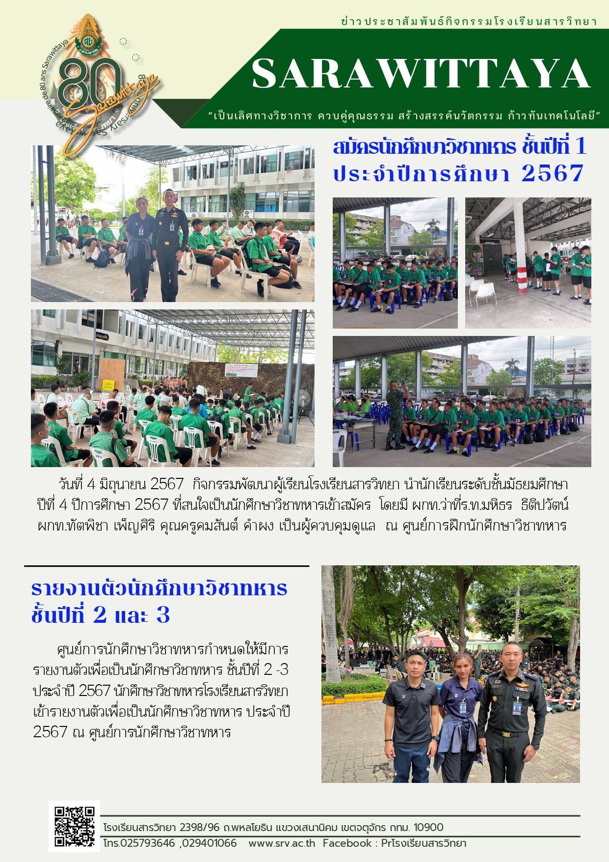 4 มิถุนายน 2567 สมัครและรายงานตัวนักศึกษาวิชาทหาร ประจำปี 2567