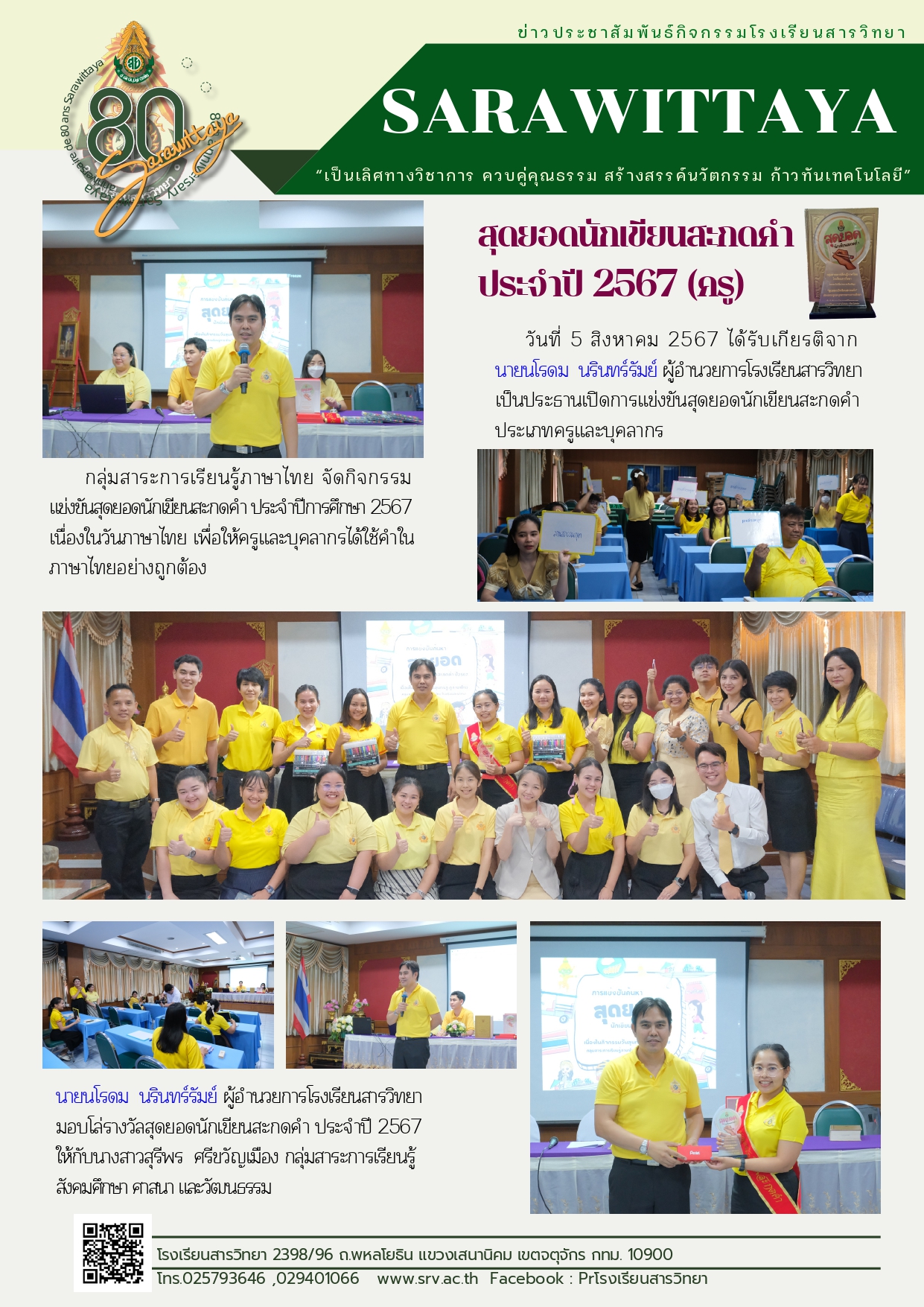 5 สิงหาคม 2567 กิจกรรมแข่งขันสุดยอดนักเขียนสะกดคำ ประจำปี 2567 (ครู)