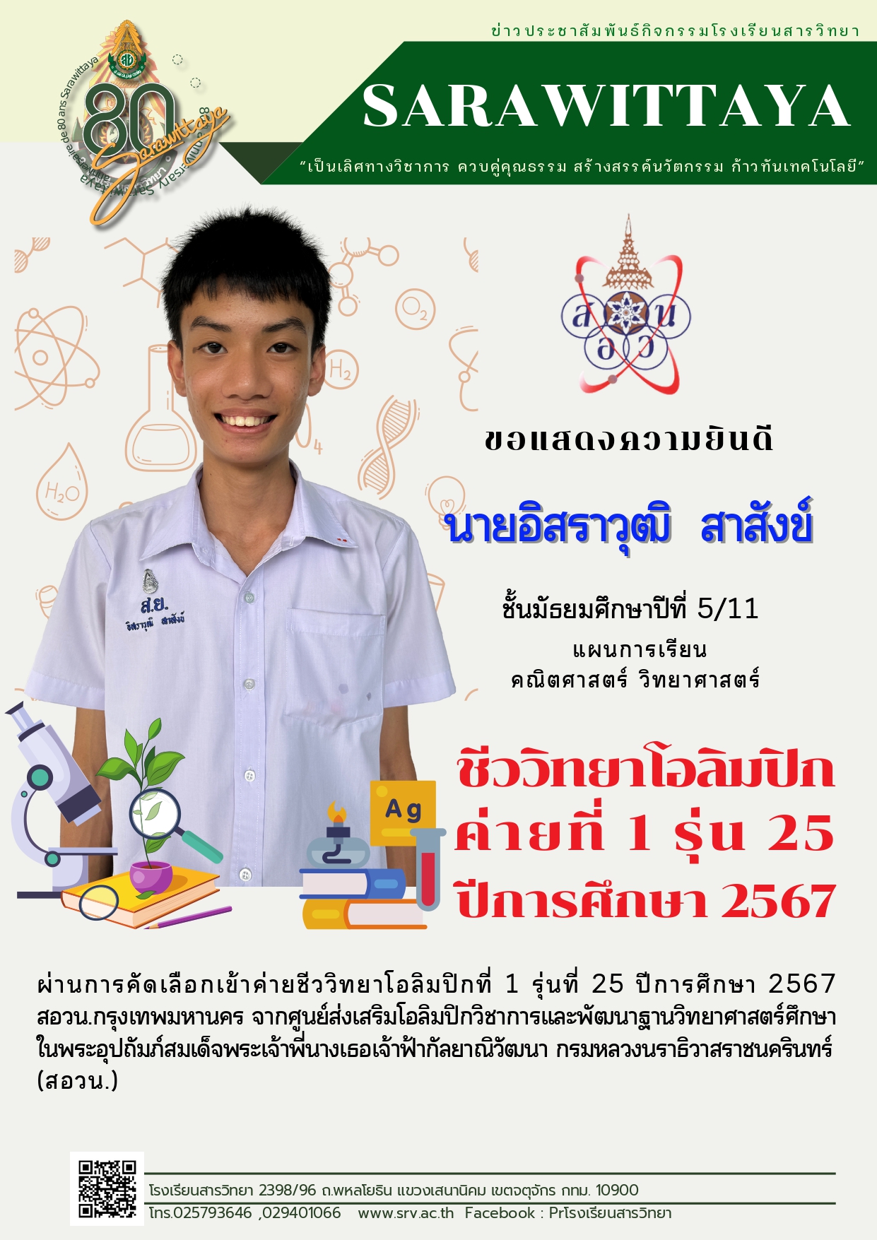 ชีววิทยาโอลิมปิก ค่าย 1 รุ่นที่ 25 ปีการศึกษา 2567