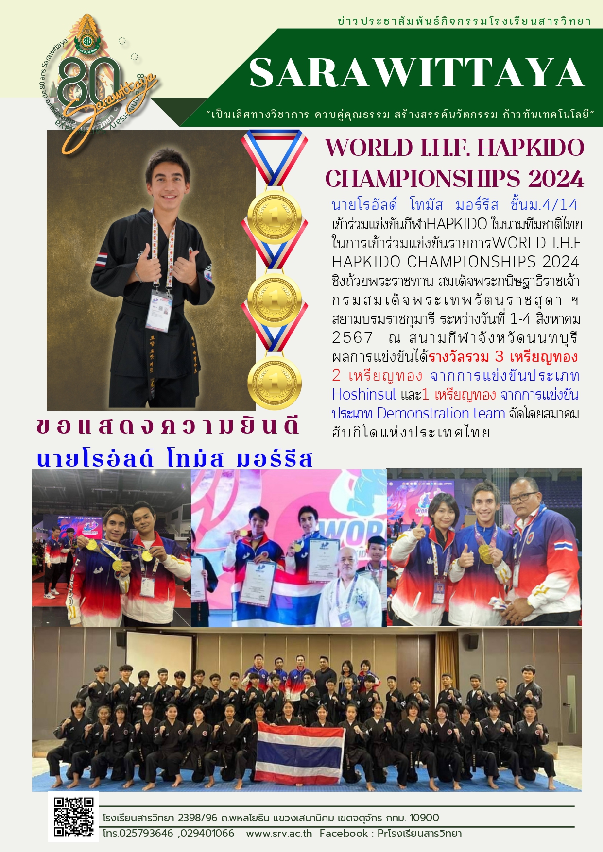 รางวัลเหรียญทอง การแข่งขันกีฬาฮับกิโด WORLD I.H.F. HAPKIDO CHAMPIONSHIPS 2024