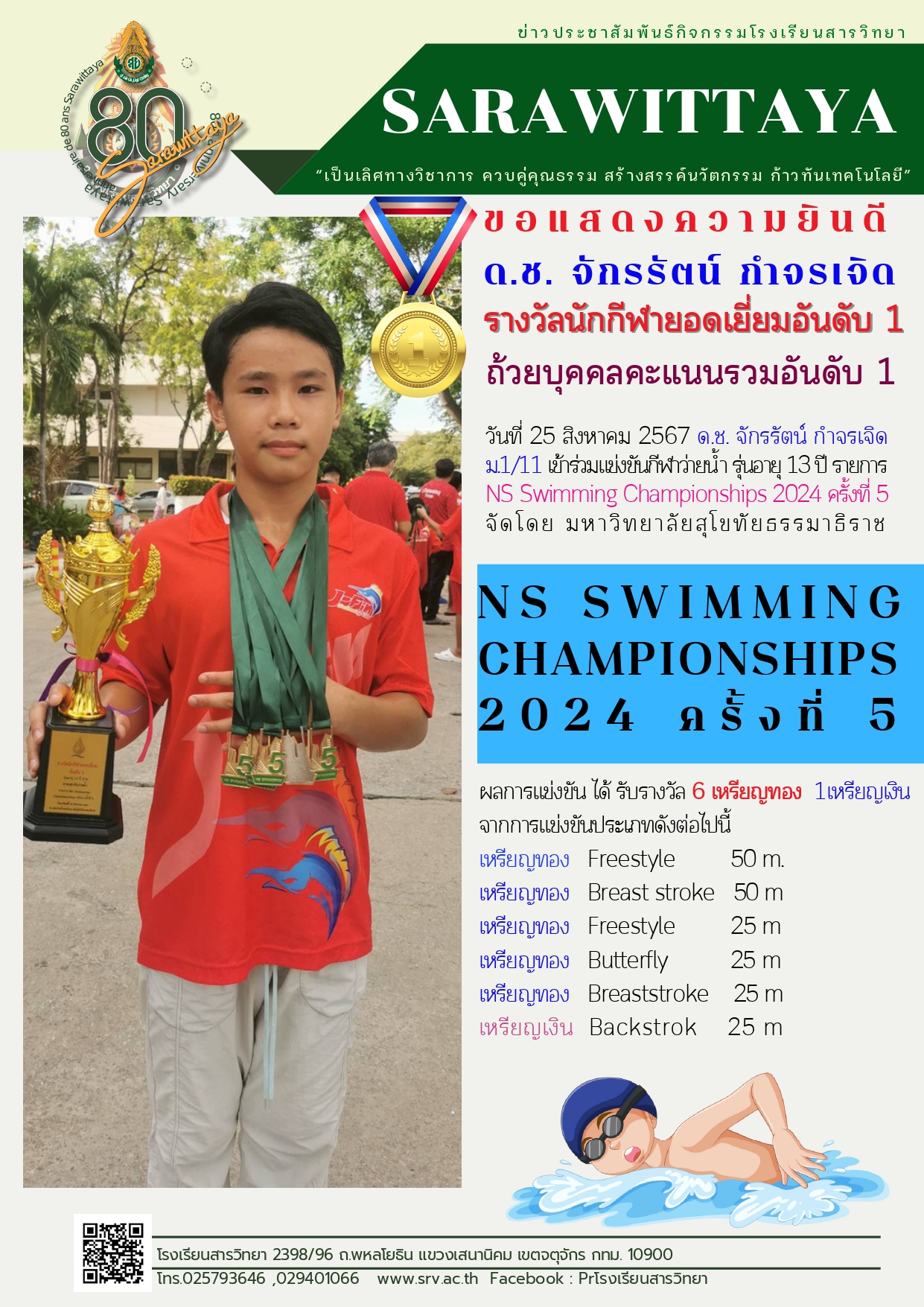 รางวัลเหรียญทอง กีฬาว่ายน้ำ รุ่นอายุ13 ปี NS Swimming Championships 2024 ครั้งที่ 5