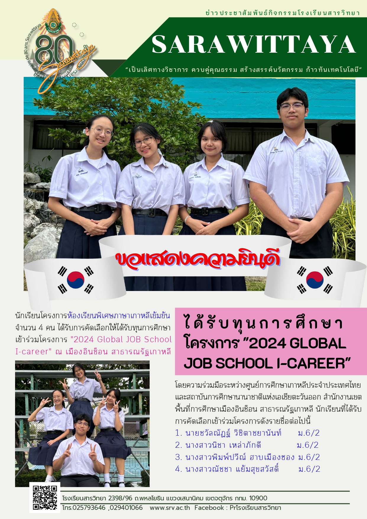 ขอแสดงความยินดีกับนักเรียนที่ได้รับทุนการศึกษา โครงการ”2024 Global Job school I-Career