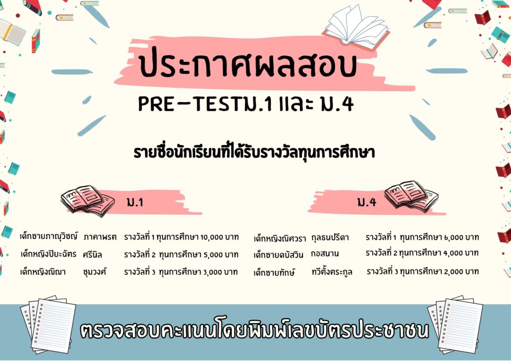 ประกาศผลการสอบ SRV Pre-Test ม.1 และ ม.4